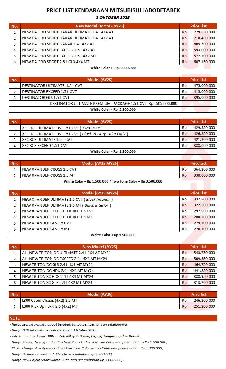 - Tanyakan Tentang Update Pricelist Terbaru Atau Daftar Harga OTR Mobil Mitsubishi Varian Atau Tipe Yang Ingin Anda Beli, Baik Itu Harga Cash Maupun Kredit.